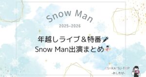 2025年末から2026年初頭にかけて放送・配信予定のSnow Man出演特番をまとめています🎉